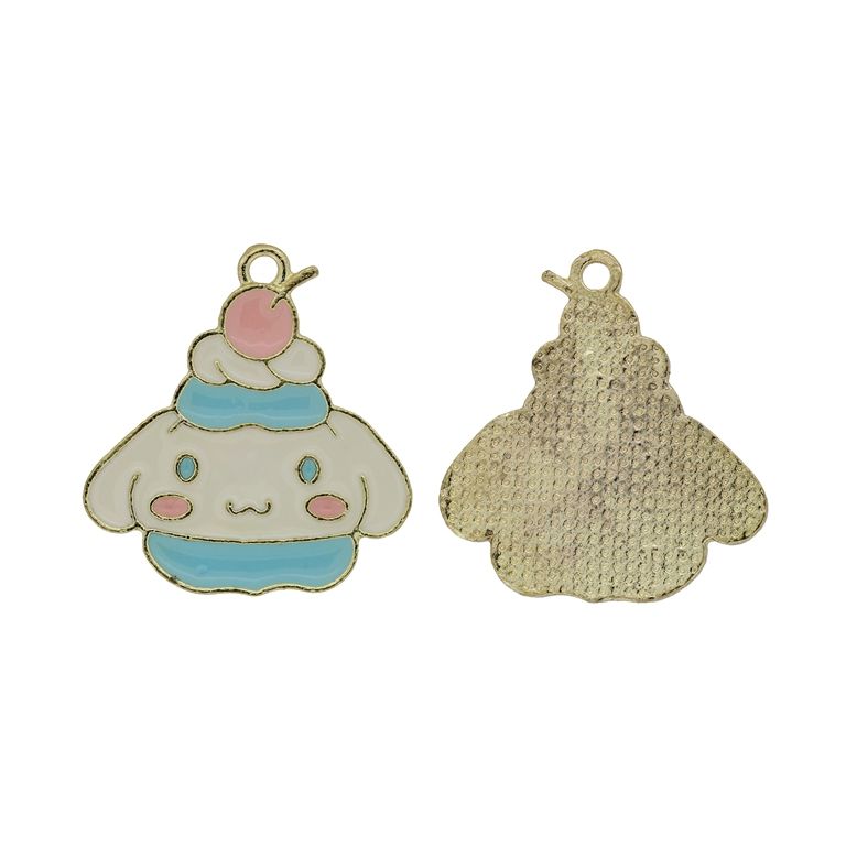 METAL BEADS WITH ENAMEL - PENDANT - CUPCAKE 01 - 25x27x1.5mm GOLD (LIGHT)-PINK (LIGHT)-BLUE (LIGHT) - PACKAGE 30pcs. Hole-2.0mm