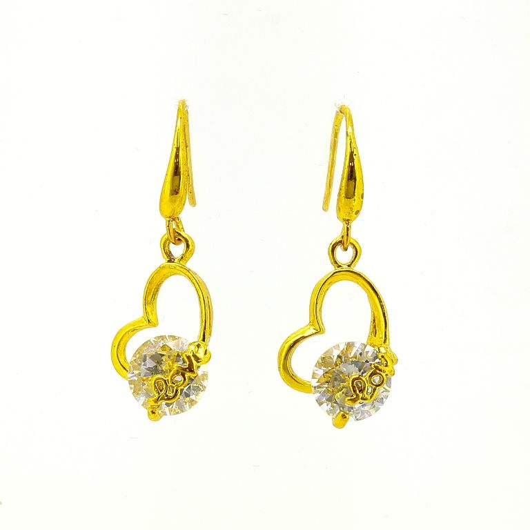 JEWELRY - EARRINGS - HOOK - ZIRCON - HEART Е614 - 1.2x3.1cm GOLD AND WHITE - 1 pair