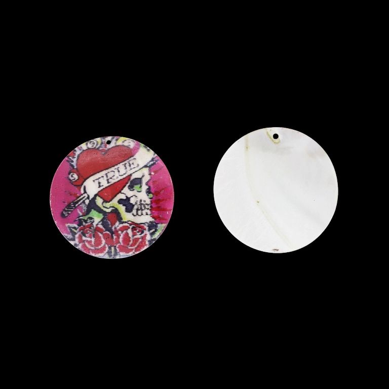 MOTHER OF PEARL BEADS - PENDANT - CIRCLE 01 - SKULL 01 - 50x2.0mm CYCLAMEN-RED-WHITE - SECOND-RATE - PACKAGE 10pcs. Hole-1.8mm