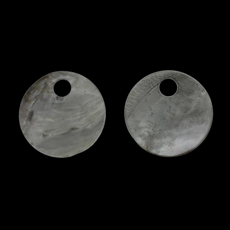 MOTHER OF PEARL BEADS - PENDANT - CIRCLE 02 - 60x2.5mm GRAY (LIGHT) - 2pcs. Hole-12.0mm