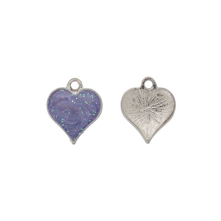 METAL BEADS WITH ENAMEL - PENDANT - HEART 32 GLITTER - 16x18x2mm NICKEL-PURPLE - 3pcs. Hole-1.8mm
