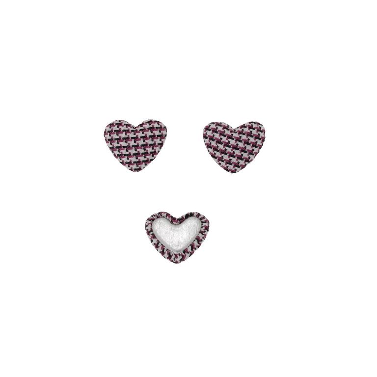 ADHESIVE BEADS - TEXTILE - HEART 174 - 14x17x6mm - PEPIT 01 - WHITE-CYCLAMEN (DARK) - 10pcs.