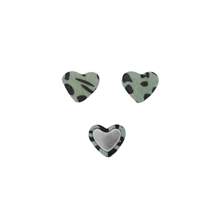 ADHESIVE BEADS - TEXTILE - HEART 244 - 14x17x6mm - LEOPARD PRINT 02 - TURQUOISE (LIGHT) AND BLACK - 10pcs.