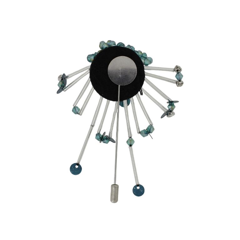 JEWELRY - BROOCH HANDMADE - METAL AND CRYSTALS - ASYMMETRY В248 - 6.5x8.2cm NICKEL-BLACK-GREEN (DARK) - PACKAGE 6pcs.
