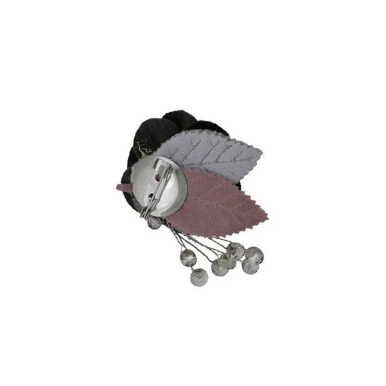 JEWELRY - BROOCH HANDMADE - METAL AND TEXTILE - ROSE В290 - 3.7x4.7cm NICKEL-GREEN MILITARY-ROSE DUST - PACKAGE 6pcs.
