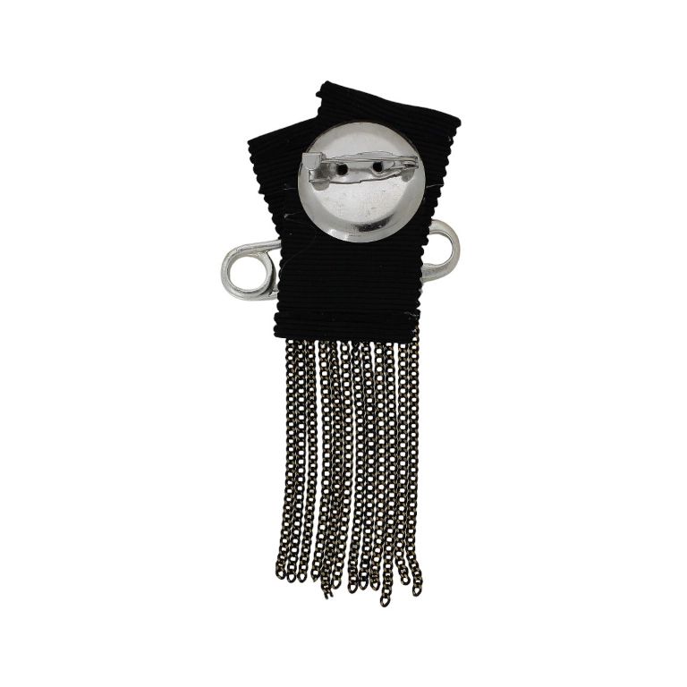 JEWELRY - BROOCH HANDMADE - METAL AND TEXTILE - NEEDLE В263 - 4.5x9.3cm NICKEL-GOLD-BLACK - 1pc.
