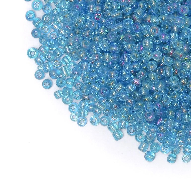 GLASS SEED BEADS - BALL 3mm - TRANSPARENT RAINBOW - BLUE (LIGHT) 177A - 50g Hole-1.0mm