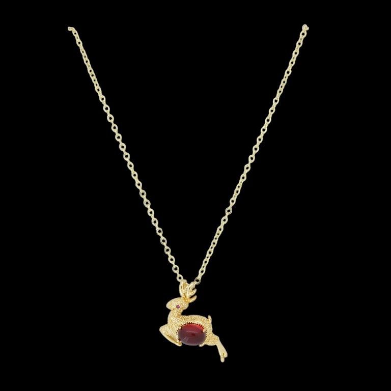 JEWELRY - NECKLACE - BRASS AND ZIRCON - DEER К176 - 2.0x1.9cm GOLD AND RED - 1pc.