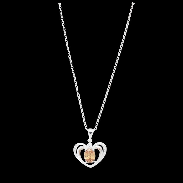 JEWELRY - NECKLACE - BRASS AND ZIRCON - HEART К212 - 2.0x2.5cm SILVER-WHITE-AMBER - 1pc.