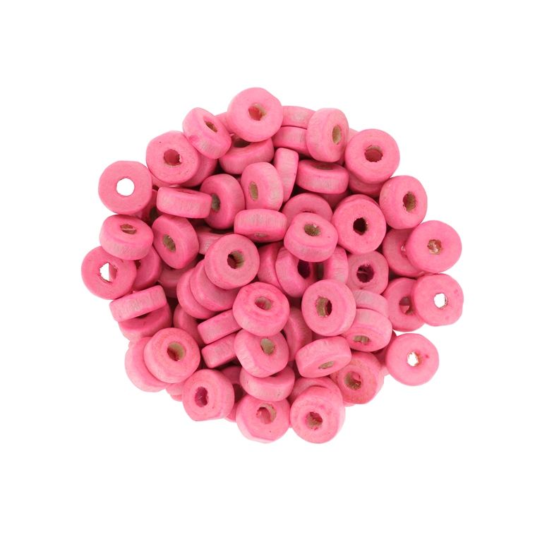 ДЪРВЕНИ МЪНИСТА - ШАЙБА 02 - 8х4мм РОЗОВО - ПАКЕТ 500 гр. (5300 бр.) Отвор-3.0мм