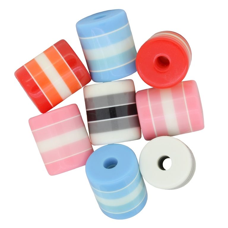 ПЛАСТМАСОВИ МЪНИСТА - РЕЗИН - ЦИЛИНДЪР РАЙЕ - 18х15мм МИКС - ПАКЕТ 100 бр. Отвор-4.3мм