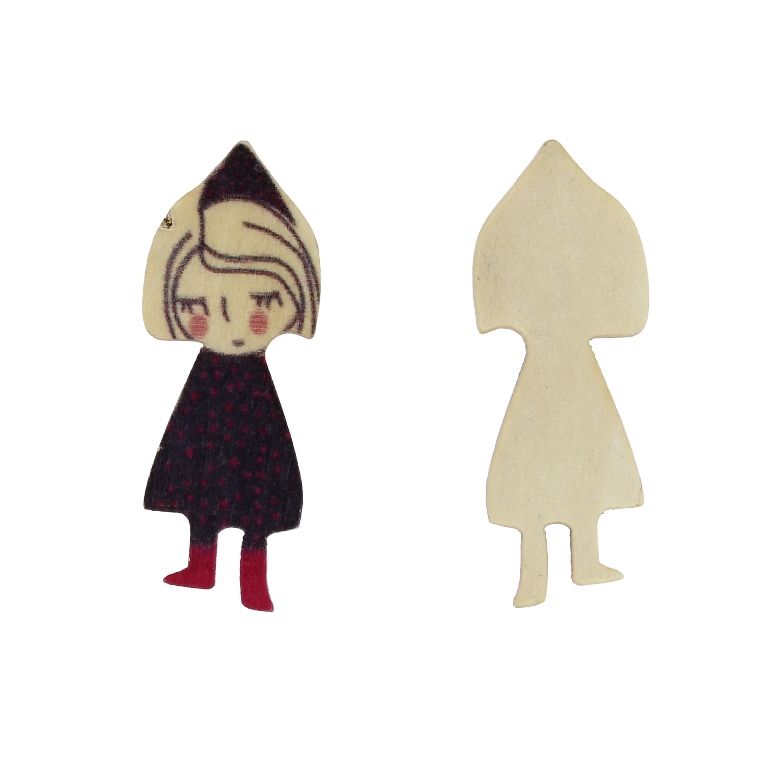 ДЪРВЕНИ МЪНИСТА ЗА ЗАЛЕПВАНЕ - МОМИЧЕ 02 - 35х13х3мм - ЧЕРНИ РОКЛИ - ПАКЕТ 200 бр.