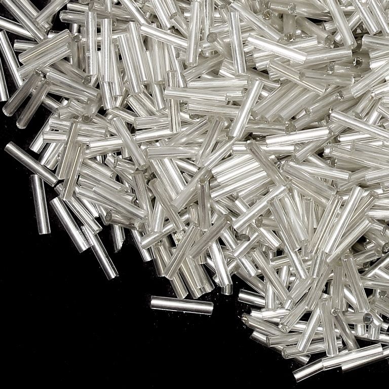 СТЪКЛЕНИ МЪНИСТА СИНЦИ - ПРЪЧИЦИ 9х2мм - СРЕБРИСТА НИШКА - БЯЛО 21 - 50 гр. Отвор-0.8мм