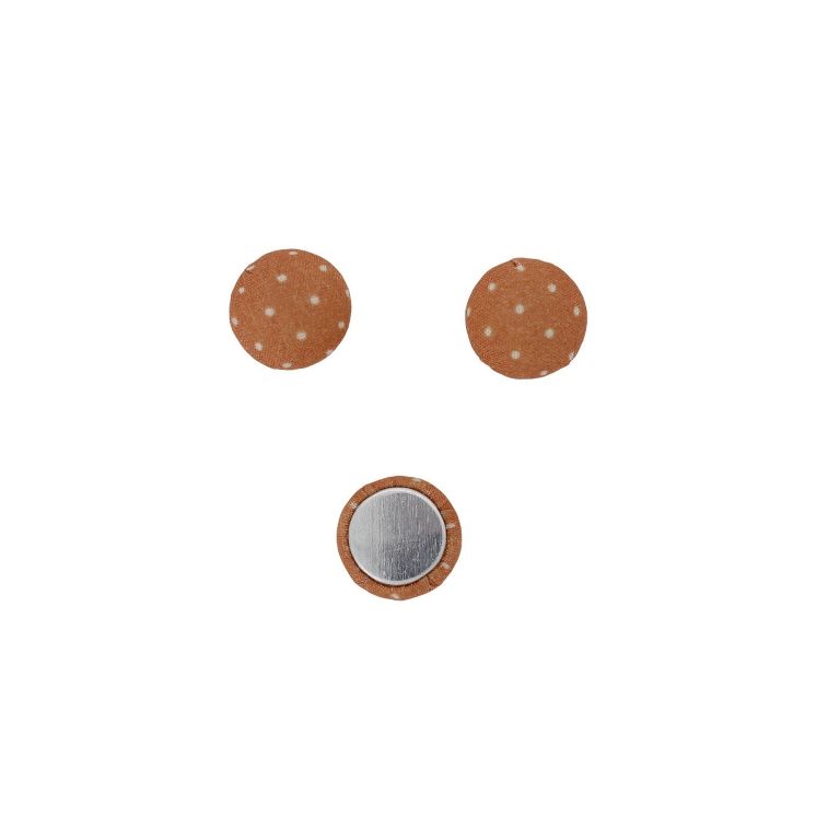 МЪНИСТА ЛЕПЯЩИ - ТЕКСТИЛНИ - ПОЛУСФЕРА 121 - 15х8мм - ТОЧКИ 03 - ОРАНЖЕВО И ЕКРЮ СВ. - ПАКЕТ 100 бр.