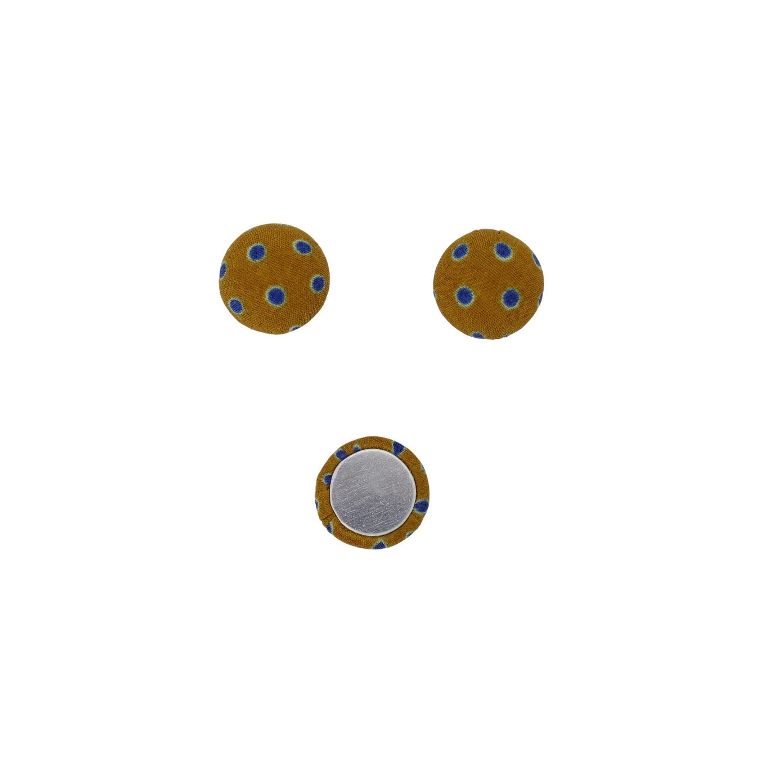 МЪНИСТА ЛЕПЯЩИ - ТЕКСТИЛНИ - ПОЛУСФЕРА 126 - 15х8мм - ТОЧКИ 04 - ОРАНЖЕВО Т.-СИНЬО-ЕКРЮ СВ. - 10 бр.