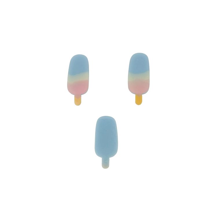 ПЛАСТМАСОВИ МЪНИСТА - РЕЗИН 3D - ЗА ЗАЛЕПВАНЕ - СЛАДОЛЕД 10 - 12х31х5мм СИНЬО СВ.-РОЗОВО СВ.-ЖЪЛТО - ПАКЕТ 30 бр.
