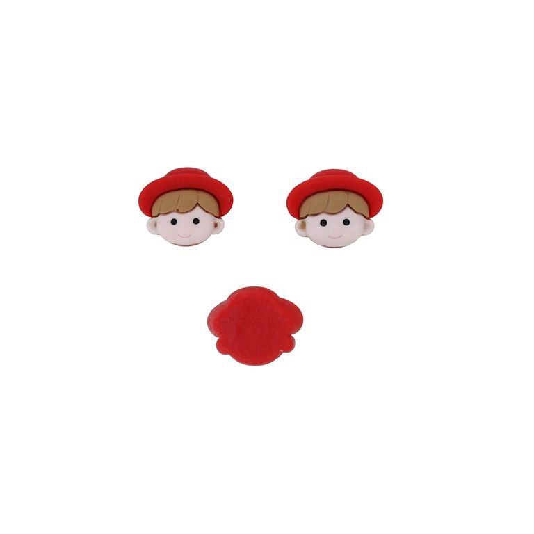 ПЛАСТМАСОВИ МЪНИСТА - РЕЗИН 3D - ЗА ЗАЛЕПВАНЕ - МОМЧЕ 04 - 22х22х8мм ЧЕРВЕНО-КАФЯВО СВ.-РОЗОВО СВ. - ПАКЕТ 30 бр.