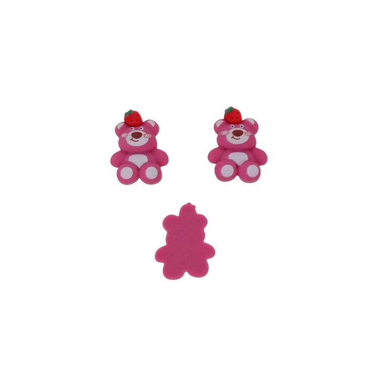 ПЛАСТМАСОВИ МЪНИСТА - РЕЗИН 3D - ЗА ЗАЛЕПВАНЕ - МЕЧЕ 41 С ЯГОДА - 18х27х6мм РОЗОВО Т.-БЯЛО-ЧЕРВЕНО - ПАКЕТ 30 бр.