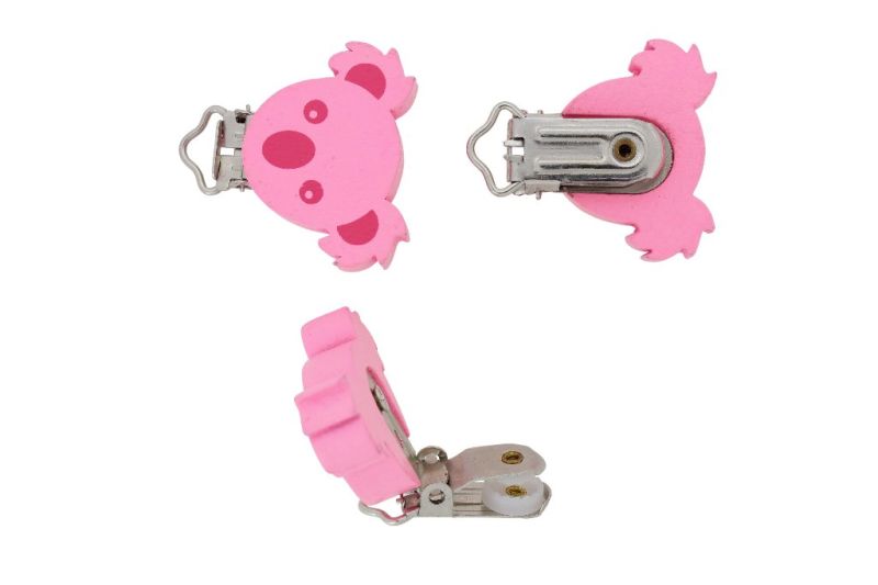 МЕТАЛНИ ЕЛЕМЕНТИ - КЛИПС ЗА БИБЕРОН - КОАЛА 01 - 39х28х10мм - РОЗОВО-РОЗОВО Т. - ПАКЕТ 10 бр.