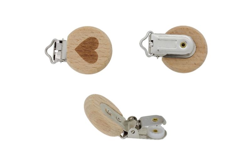 МЕТАЛНИ ЕЛЕМЕНТИ - КЛИПС ЗА БИБЕРОН - КРЪГ 30мм - БУК - СЪРЦЕ 01 - НАТУРАЛЕН - 1 бр.