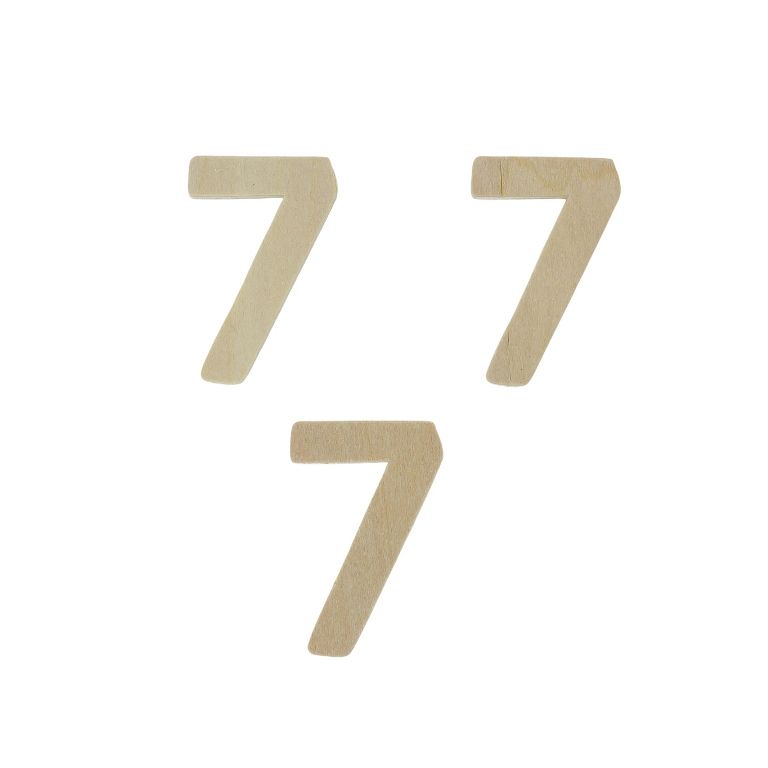 МАТЕРИАЛИ ЗА КРАФТ И ДЕКОРАЦИЯ - ДЪРВЕНИ ОСНОВИ - ЦИФРА 7 - 2.8х4.6х0.3см - НАТУРАЛЕН - 4 бр.
