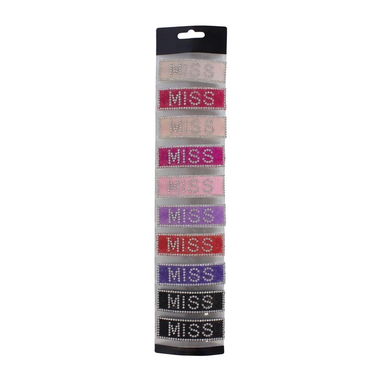 БИЖУТЕРИЯ - ФИБА - ТИК-ТАК - МЕТАЛ И КРИСТАЛИ - НАДПИС 01 MISS - 7.3х2.4х0.5см МИКС - ПАКЕТ 10 бр.