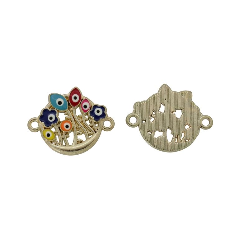 МЕТАЛНИ МЪНИСТА С ЕМАЙЛ - СВЪРЗВАЩ ЕЛЕМЕНТ С 2 ХАЛКИ - ОЧИ 01 - 23х18х2мм ЗЛАТИСТО И МИКС - ПАКЕТ 30 бр. Отвор-1.5мм