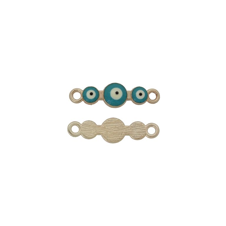 МЕТАЛНИ МЪНИСТА С ЕМАЙЛ - СВЪРЗВАЩ ЕЛЕМЕНТ С 2 ХАЛКИ - ОКО 11 - 26х7х3мм ЗЛАТИСТО-ТЮРКОАЗ-БЯЛО - 3 бр. Отвор-2.0мм