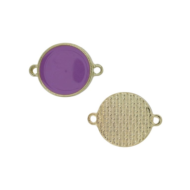 МЕТАЛНИ МЪНИСТА С ЕМАЙЛ - СВЪРЗВАЩ ЕЛЕМЕНТ С 2 ХАЛКИ - КРЪГ 02 - 24х18х3мм ЗЛАТИСТО-ЛИЛАВО - ПАКЕТ 30 бр. Отвор-1.8мм