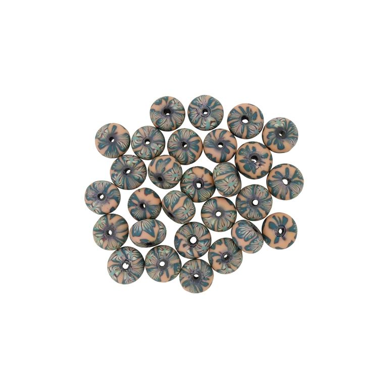 МЪНИСТА ОТ ПОЛИМЕРНА ГЛИНА ФИМО - ТОПЧЕ СПЛЕСНАТО - ЦВЕТЕ 13 - 6х10мм ПРАКОВЕНО СВ.-ПЕТРОЛЕНО-КАФЯВО - ПАКЕТ 500 бр. Отвор-1.8мм