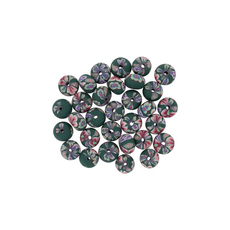 МЪНИСТА ОТ ПОЛИМЕРНА ГЛИНА ФИМО - ТОПЧЕ СПЛЕСНАТО - ЦВЕТЯ 04 - 6х10мм ЗЕЛЕНО Т.-РОЗОВО-ЛИЛАВО - ПАКЕТ 500 бр. Отвор-1.8мм