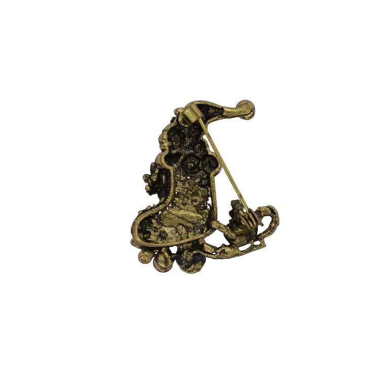 БИЖУТЕРИЯ - БРОШКА - МЕТАЛ И КРИСТАЛИ - ДЯДО КОЛЕДА В209 - 3.2х3.6см ЗЛАТИСТО-ЧЕРВЕНО-ЗЕЛЕНО Т. - 1 бр.
