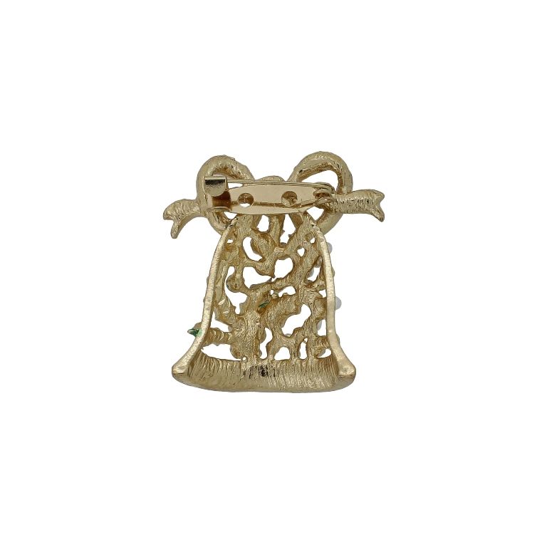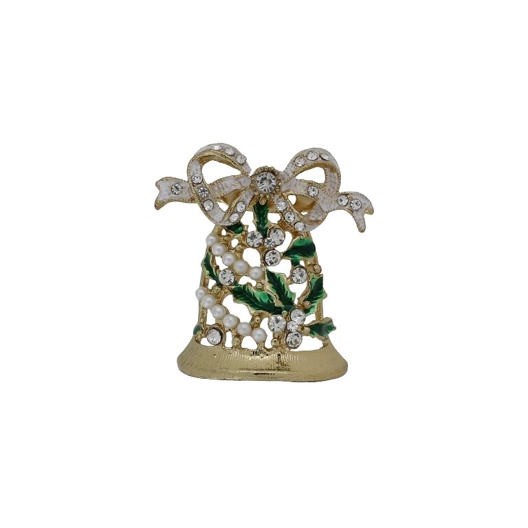 БИЖУТЕРИЯ - БРОШКА - МЕТАЛ И КРИСТАЛИ - КОЛЕДНА КАМБАНА В211 - 3.5х3.7см ЗЛАТИСТО-БЯЛО-ЗЕЛЕНО - 1 бр.