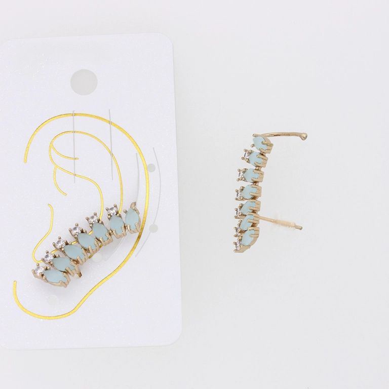 БИЖУТЕРИЯ - ОБЕЦА ПО УХОТО - ДЯСНА - ЦИРКОН Е877 - ЗЛАТИСТО-СИНЬО СВ.-БЯЛО - ПАКЕТ 6 бр.