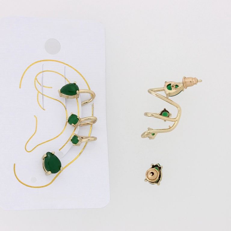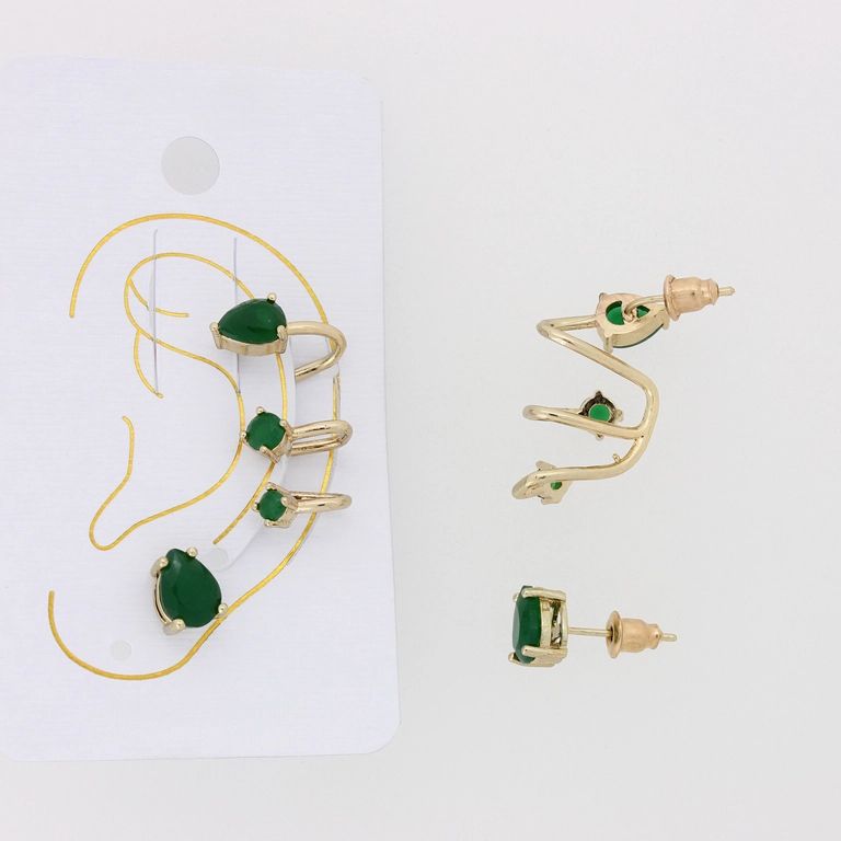 БИЖУТЕРИЯ - ОБЕЦА ПО УХОТО - ДЯСНА - ЦИРКОН Е324 - ЗЛАТИСТО И ЗЕЛЕНО СВ. - ПАКЕТ 6 компл.