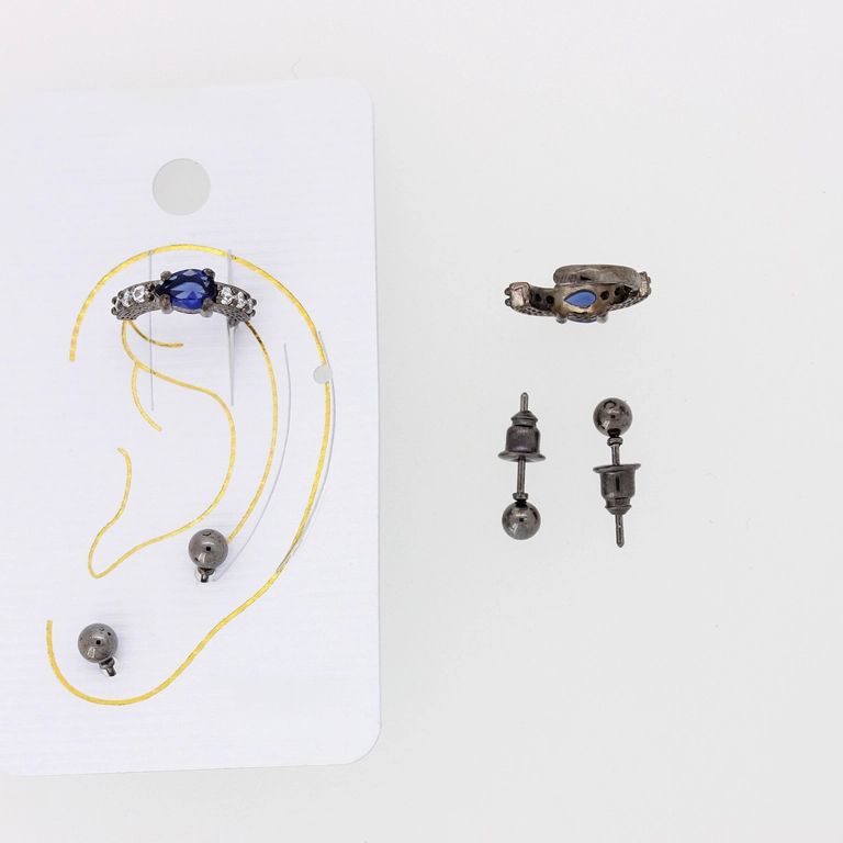 БИЖУТЕРИЯ - ОБЕЦА ПО УХОТО - ЦИРКОН Е336 - ОКСИ-СИНЬО Т.-БЯЛО - ПАКЕТ 6 компл.
