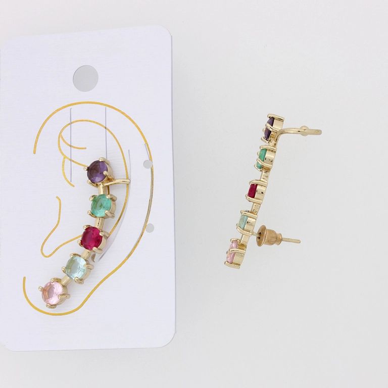 БИЖУТЕРИЯ - ОБЕЦА ПО УХОТО - ЛЯВА - ЦИРКОН Е871 - ЗЛАТИСТО И МИКС - 1 бр.