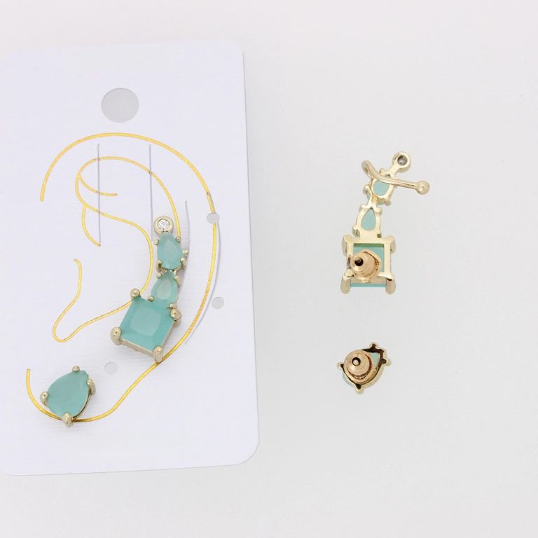 БИЖУТЕРИЯ - ОБЕЦА ПО УХОТО - ЛЯВА - ЦИРКОН Е322 - ЗЛАТИСТО И ТЮРКОАЗ - 1 компл.