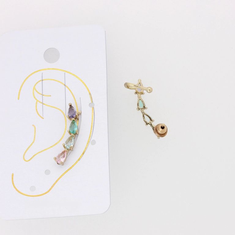 БИЖУТЕРИЯ - ОБЕЦА ПО УХОТО - ЛЯВА - ЦИРКОН Е886 - ЗЛАТИСТО И МИКС - 1 бр.