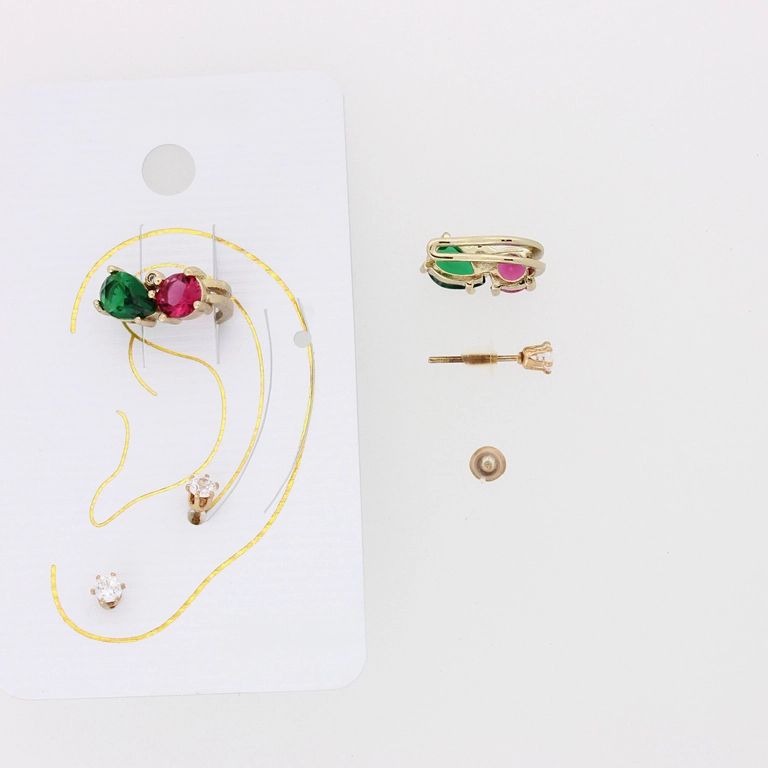БИЖУТЕРИЯ - ОБЕЦА ПО УХОТО - ЦИРКОН Е329 - ЗЛАТИСТО-ЗЕЛЕНО Т.-ЦИКЛАМА Т. - 1 компл.