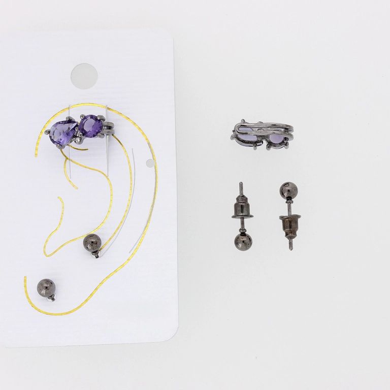 БИЖУТЕРИЯ - ОБЕЦА ПО УХОТО - ЦИРКОН Е329 - ОКСИДИРАНО И ЛИЛАВО - 1 компл.
