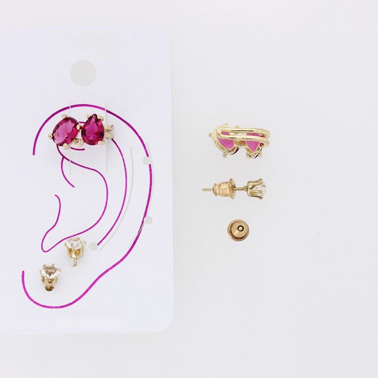 БИЖУТЕРИЯ - ОБЕЦА ПО УХОТО - ЦИРКОН Е329 - ЗЛАТИСТО И ЦИКЛАМА - 1 компл.