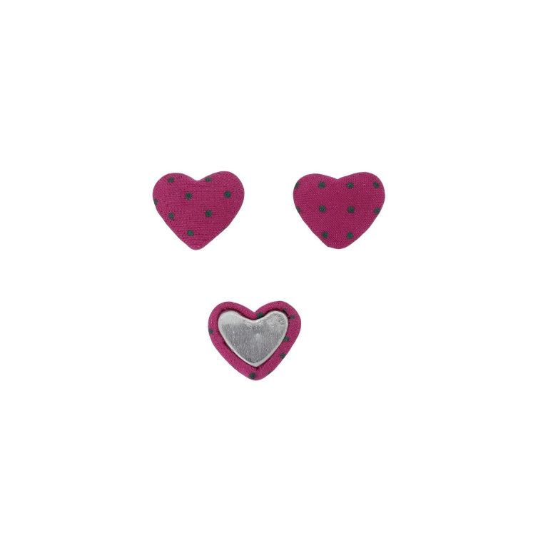 МЪНИСТА ЛЕПЯЩИ - ТЕКСТИЛНИ - СЪРЦЕ 213 - 14х17х6мм - ТОЧКИ 02 - ЦИКЛАМА И ЗЕЛЕНО Т. - 10 бр.