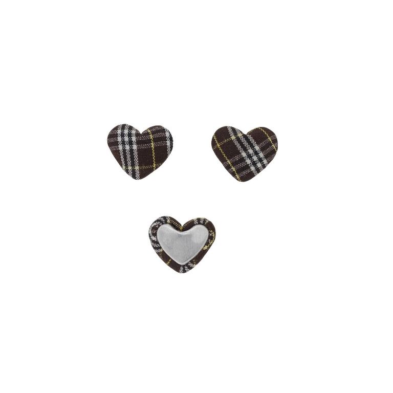 МЪНИСТА ЛЕПЯЩИ - ТЕКСТИЛНИ - СЪРЦЕ 237 - 14х17х6мм - КАРЕ 02 - КАФЯВО Т.-БЯЛО-ЖЪЛТО - ПАКЕТ 100 бр.