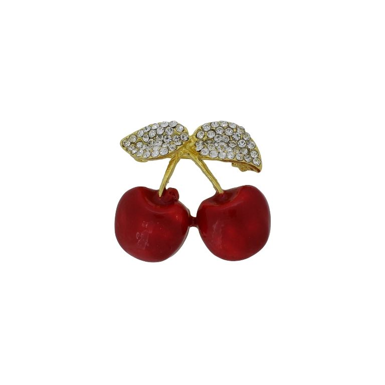 БИЖУТЕРИЯ - БРОШКА - МЕТАЛ И КРИСТАЛИ - ЧЕРЕШИ В217 - 3.6х3.2см ЗЛАТИСТО-ЧЕРВЕНО-БЯЛО - ПАКЕТ 6 бр.