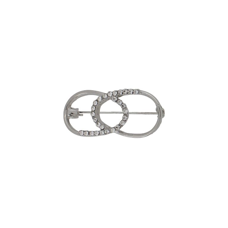 БИЖУТЕРИЯ - БРОШКА - МЕТАЛ И КРИСТАЛИ - КАПКИ В224 - 1.8х4.0см НИКЕЛ-ЗЛАТИСТО-БЯЛО - ПАКЕТ 6 бр.