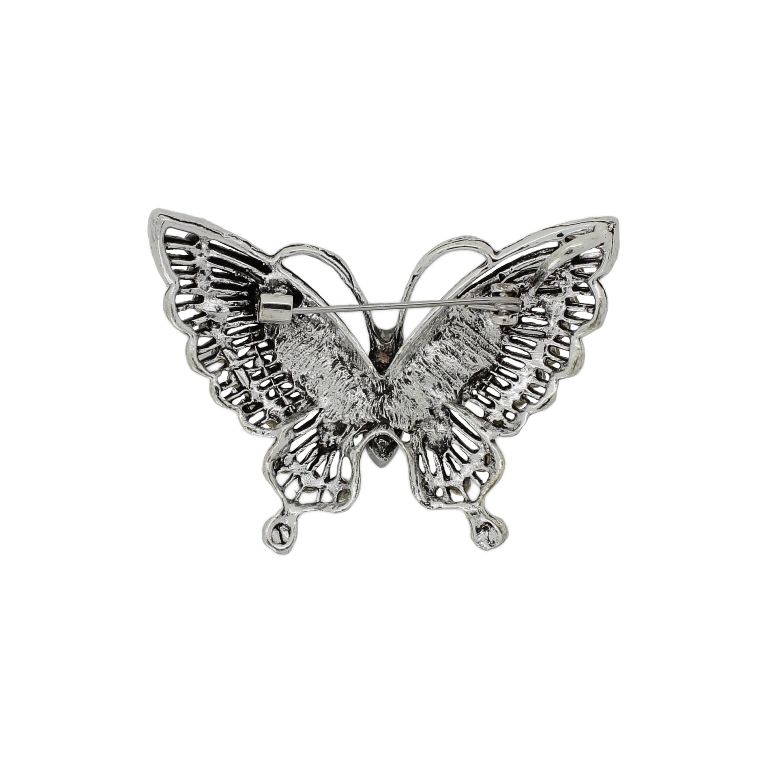 БИЖУТЕРИЯ - БРОШКА - МЕТАЛ И КРИСТАЛИ - ПЕПЕРУДА В219 - 5.4х3.8см НИКЕЛ-БЯЛО (АВ) - 1 бр.