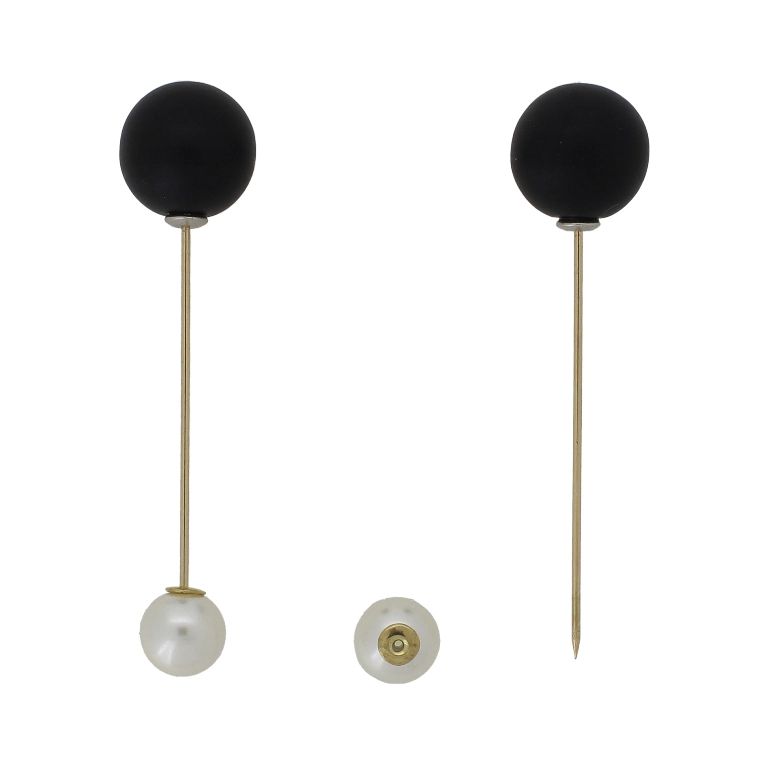БИЖУТЕРИЯ - БРОШКА - МЕТАЛ И ПЕРЛИ - ИГЛА B226 - 1.6х3.7см ЗЛАТИСТО-ЕКРЮ-ЧЕРНО (МАТ) - 1 бр.