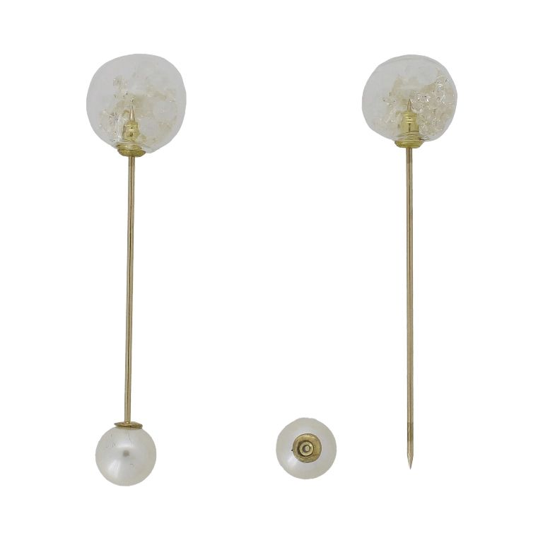БИЖУТЕРИЯ - БРОШКА - МЕТАЛ И ПЕРЛИ - ИГЛА B231 - 1.8х6.7см ЗЛАТИСТО-ЕКРЮ-БЯЛО - 1 бр.