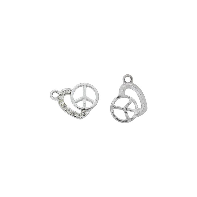 МЕТАЛНИ МЪНИСТА С КРИСТАЛИ - ВИСУЛКА - СЪРЦЕ 02 МИР - 15х20х2мм СРЕБРИСТО И БЯЛО - ПАКЕТ 30 бр. Отвор-2.0мм